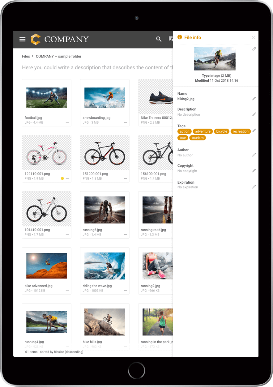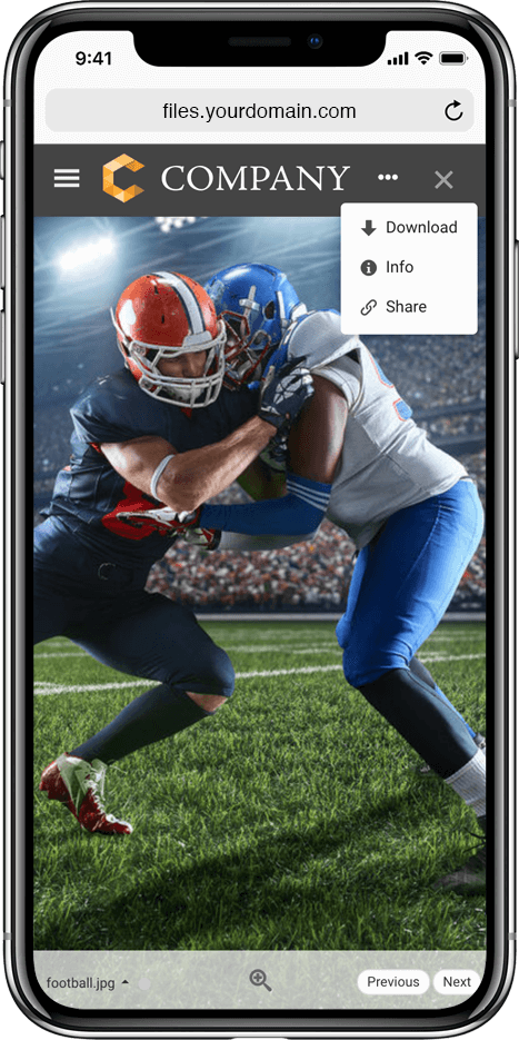 Put a professional face on your digital asset management system with Filecamp’s custom branding features. Use your company logo and colors, plus a custom URL to make a seamless transition between your website and your Filecamp. Need additional brand portals? No problem. You can add more customized portals to your account in seconds.